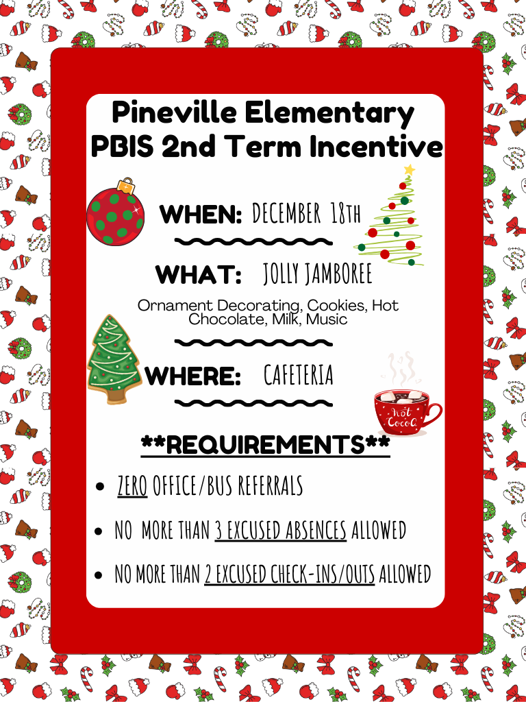 This is definitely going to be a jolly time for our PBIS and Attendance Incentive for Term 2. We are working toward increasing the amount of time students are at school and decreasing student absences and check ins/outs because attendance matters! We want all of our students to participate, but they will have to meet the requirements.